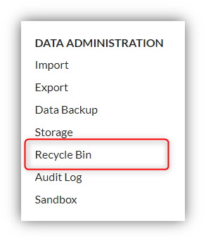 - Under the “Data Administration” section, click on the “Recycle Bin” item.