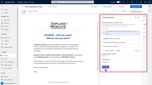 Incorporating AI into your email content creation process can streamline how you generate personalized and engaging content, ultimately driving better results from your email campaigns. By leveraging Microsoft Dynamics 365 Customer Insights' AI functionality for email creation, you can start with either a blank slate or existing content, refine it through AI suggestions, and customize it to perfection. This human-AI collaboration saves time and ensures your communication is impactful and engaging.