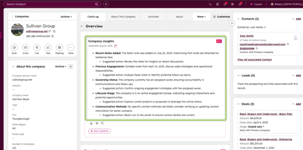 This capability automatically enriches existing and new contact and company records with HubSpot’s priority data, AI-driven smart properties, and contact email conversations. This minimizes time required for manual research and data entry. Data enrichment is now included in Core Seats for Starter Hubs and higher. A nine-minute video overview is here: https://hub.wistia.com/medias/iq46shjn1k