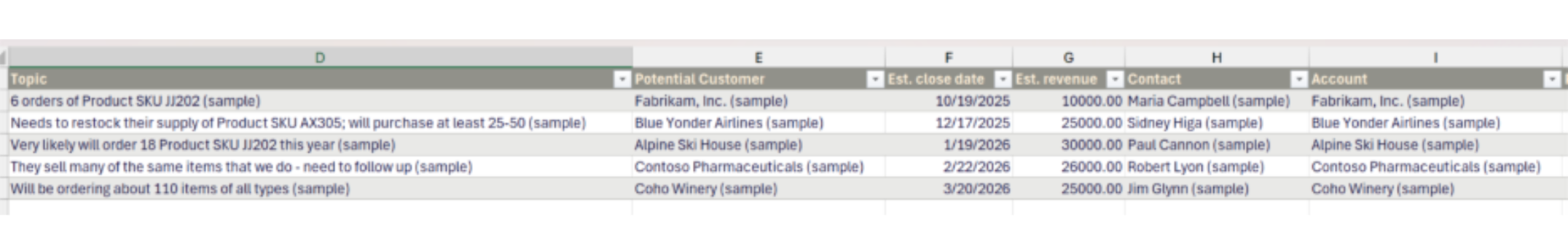 • The Estimated Revenue and Estimated Close Date