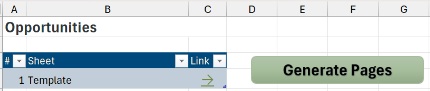We also want a way to easily navigate to the sheets of different Opportunities and back, without needing to tab through multiple sheets.